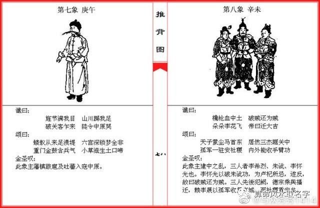 第三十三象:丙申。巽下兑上,泽风大过卦。预言清兵入关,传十帝。